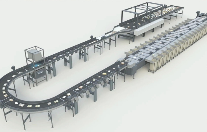 輸送帶分揀機(jī):這是基本的分揀機(jī)設(shè)備類型,通過輸送帶將包裹運(yùn)送至不同的分揀區(qū)域或出口。輸送帶可以是水平的或傾斜的,根據(jù)分揀規(guī)則將包裹引導(dǎo)到相應(yīng)的位置。